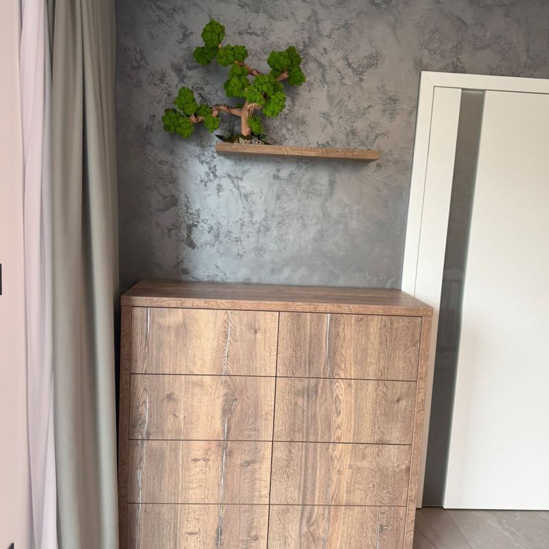 Model bonsai extra má bohatú korunu z lišajníka. Koruna je tvarovaná do viacerých úrovní, čo vytvára dojem prastromu. Bonsai pôsobí majestátne a hodí sa ako dominantný prvok do obývačky či kancelárie. Kmeň je z prírodného dreva a stromček je bezúdržbový.