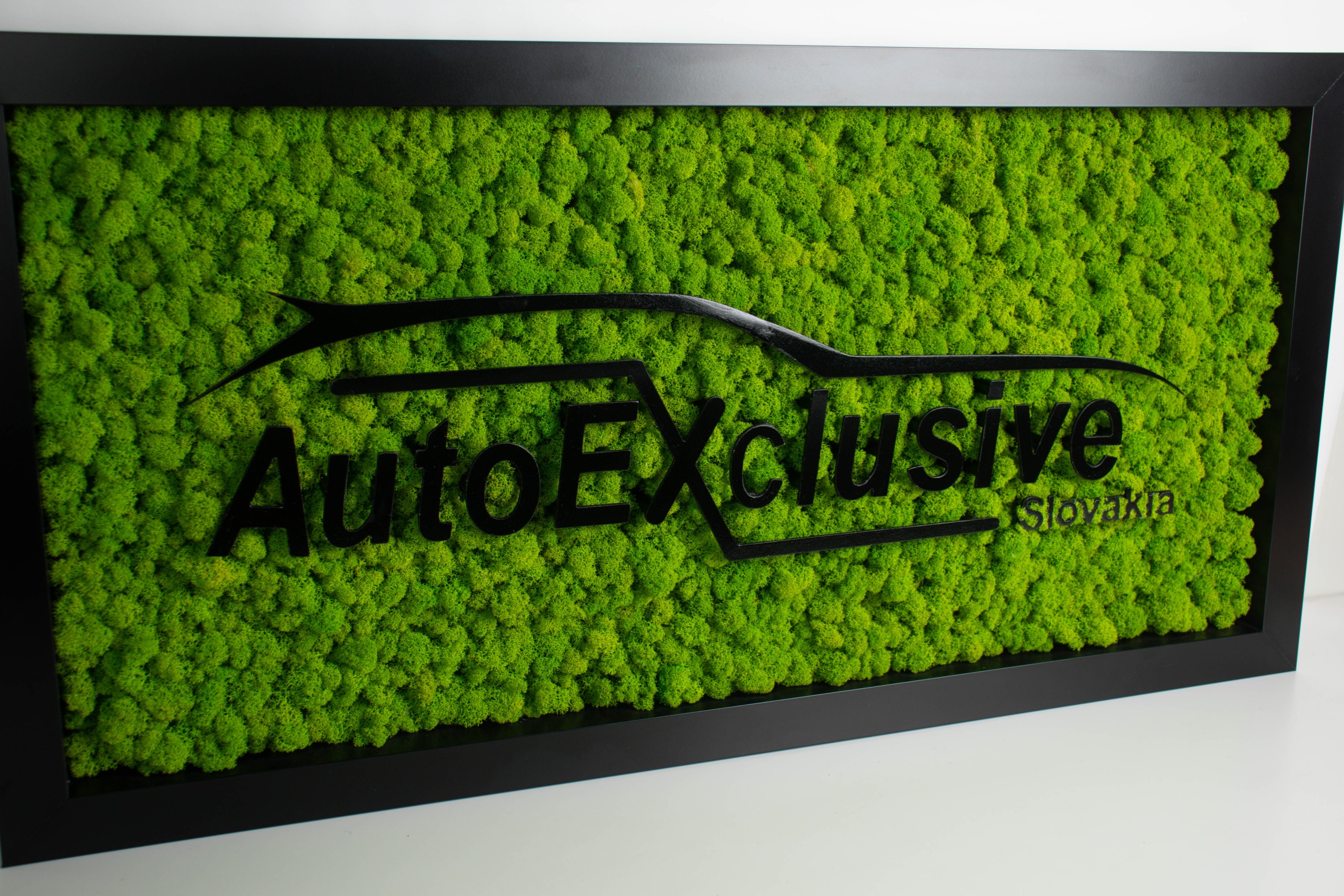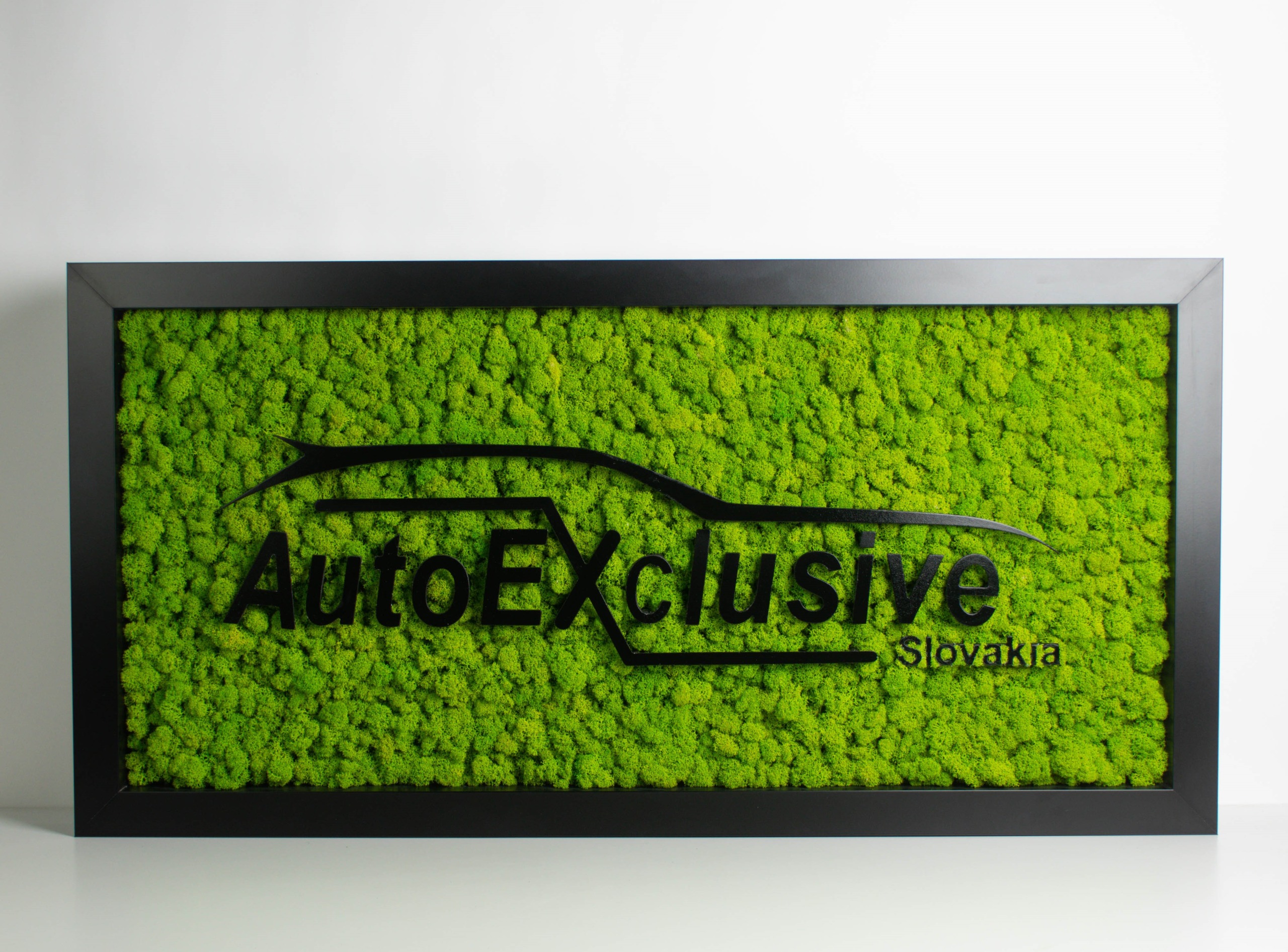 Logo Autoexclusive predstavuje značku vytvorenú z machového materiálu. Používame rôzne odtiene machu na vytvorenie plastického efektu. Logo je vhodné na domáce použitie či do firemných priestorov. Vyrobíme ho v požadovanej veľkosti a prevedení.