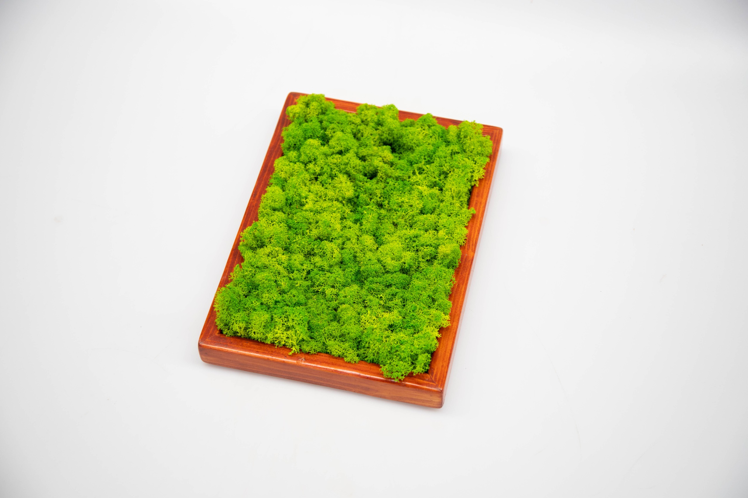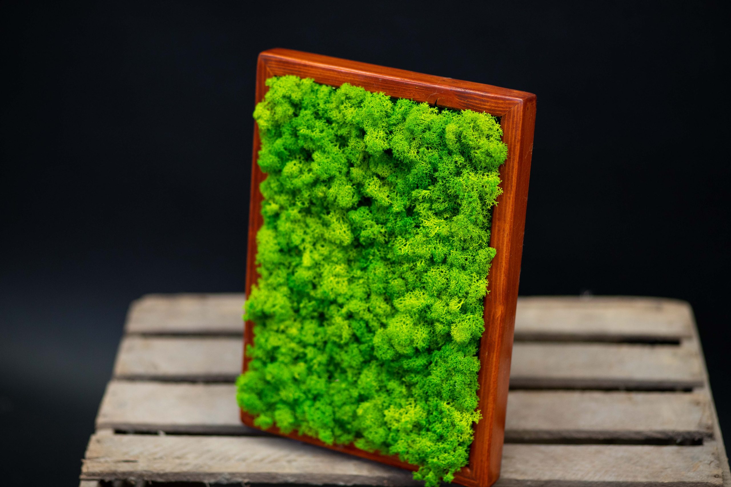 Tento obraz využíva mach lišajnik v tmavo‑zelenom odtieni, ktorý vytvára jednotný a sofistikovaný vzhľad. Jednofarebný panel sa hodí do minimalistických interiérov, kde vynikne jeho textúra. Môže byť doplnený tenkým dreveným rámom alebo necháte mach presahovať až na okraj. Obraz je bezúdržbový a navodzuje pokoj.