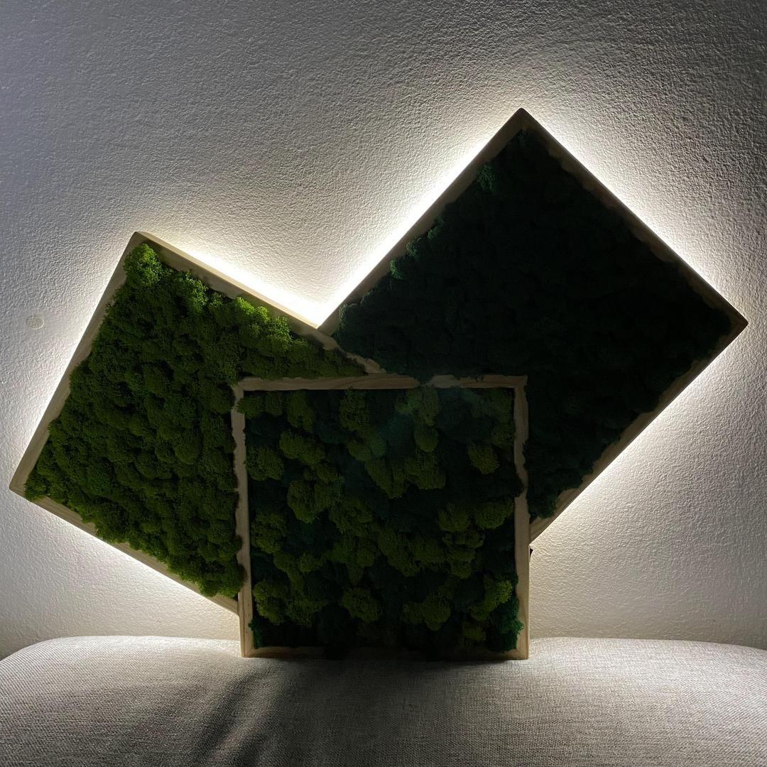Trojobraz LED je triptych pozostávajúci z troch prepojených obrazov. Každý panel obsahuje inú kombináciu machu čím sa dosahuje zaujímavý prechod. LED podsvietenie za obrazom vytvára mäkké svetlo na stene. Tento triptych je ideálny nad pohovku alebo do kancelárie, kde sa stane dominantným vizuálnym prvkom.