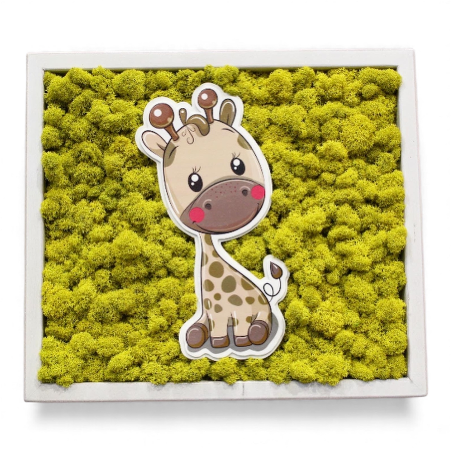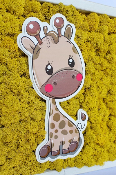 ŽIRAFA prinesie do miestnosti exotický nádych a detskú radosť. Vhodné do detských izieb alebo škôl. Obraz je bezúdržbový a prispôsobíme ho veľkosťou aj farbou stabilizovaného machu.